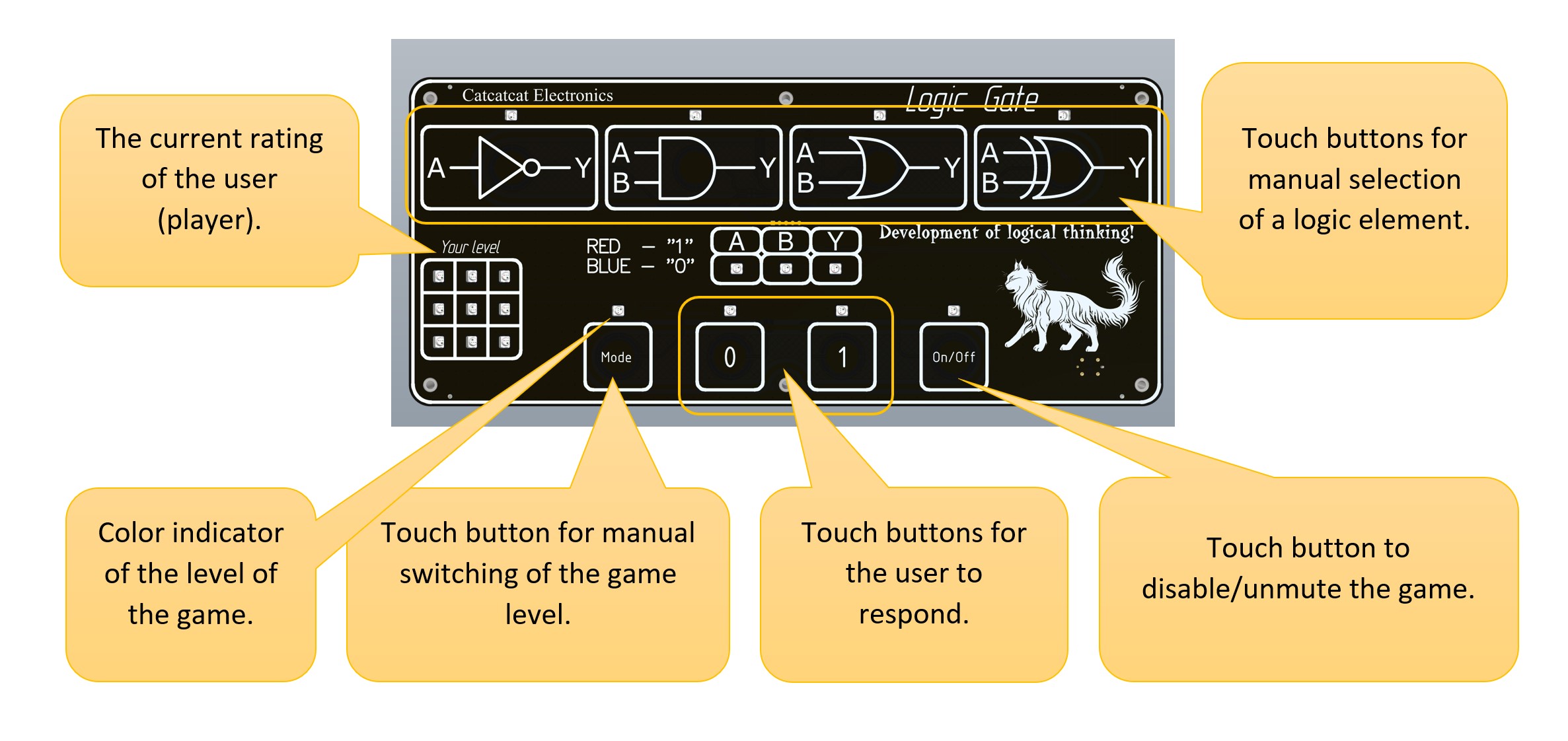 0 – level (the level indicator is off), this is the level of learning when the user chooses a logic element for himself and gives an answer to the input states of the logic element offered by the game.