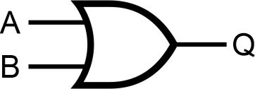 If there is a high level (red) at any of the inputs (or both), there should be a high level (red) at the output. Only if there is a low level (blue) at both inputs, there will be a low level (blue) at the output. For the logic element “OR”, the high level is dominant.