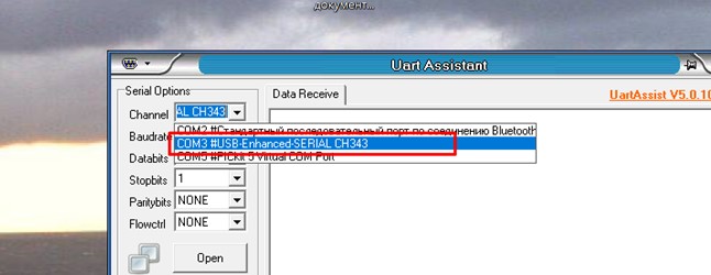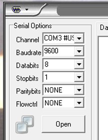 Any terminal program can be used for control. When connected, you will see a new serial port