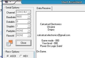 The game is a touch panel with a light indication of the status and mode of operation. The game can be controlled directly from the panel by touching the touch buttons, or using the computer’s serial port with a simple command system. See the description for setting up and describing control codes.