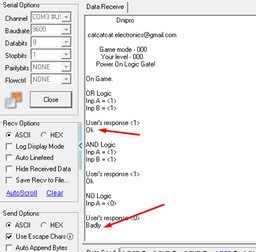 after powering the game or turning it on using the On/Off touch button, a message will be sent to the serial port.