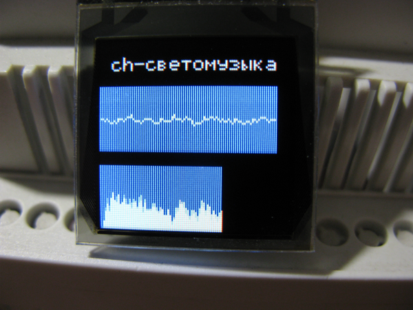 Первые робкие попытки получить результат, пока маюсь с конструкцией ВОУ, делать каналы на отдельных светодиодах, или применить RGB. у каждого варианта свои достоинства и недостатки, а пока попробовал самый простой и примитивный вариант обработки вывести на тот же дисплей… так-как дисплей не предназначен для такого типа воспроизведения, съёмку делал в расфокусировке.